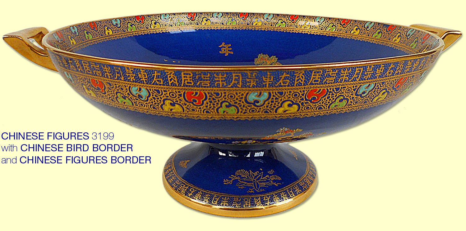 The CHINESE BIRD BORDER was also used on the contemporaneous CHINESE FIGURES pattern, the first of which was pattern number 3199, following on from CHINESE BIRD 3198. Below is an example.