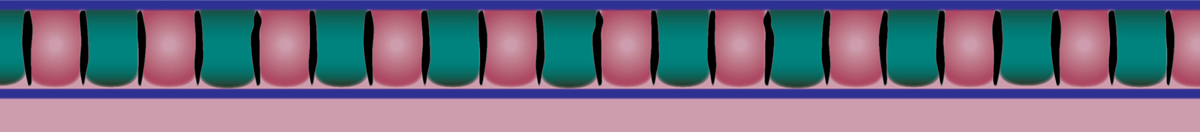 The freehand-painted border used with the pattern takes two forms: either a dentil (tooth-like blocks) or zig-zag. Barb has redrawn these for us below—dentil followed by zig-zag.
